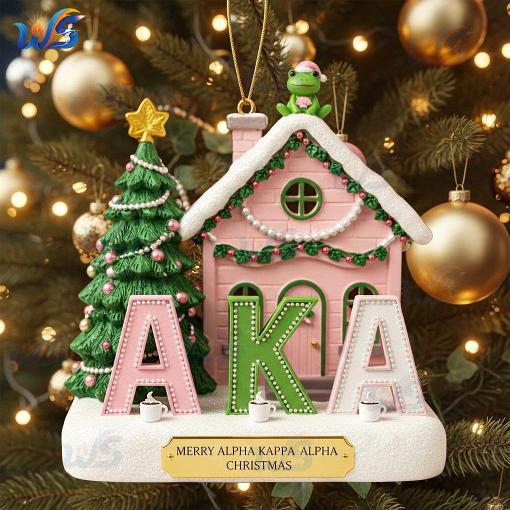 One common frustration we hear is about finding official merchandise that genuinely stands out and feels authentic, especially for holiday display. Many commemorative items can feel mass-produced, lacking the detail and specific symbolism that truly resonates. This AKA Christmas Ornament design directly fixes that by integrating unmistakable elements. The use of vibrant pink and green, the precise “AKA” lettering adorned with delicate pearl accents, and even the charming little frog in a Santa hat, all come together to create a visually rich and authentic piece. The detailed craftsmanship ensures every element of your sisterhood is beautifully represented, preventing generic holiday disappointment. Unlike typical ornaments that might offer a simple logo print, this design builds a whole festive scene around your affiliation. It’s crafted from a durable material, which means it resists the kind of wear and tear that can quickly diminish the appeal of lesser-quality souvenirs. The sturdy hanging loop is intentionally designed to support the ornament’s weight, keeping it securely on your tree and preventing accidental falls, a common problem with flimsier designs.