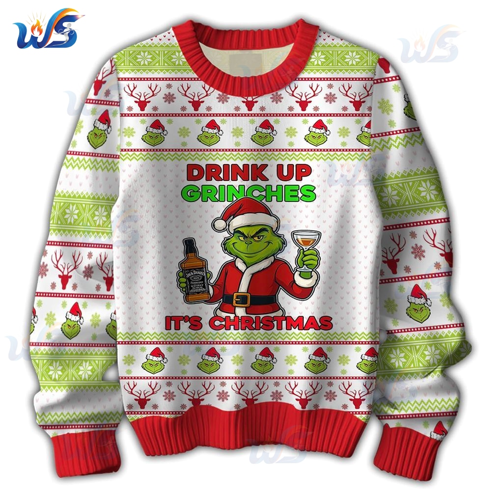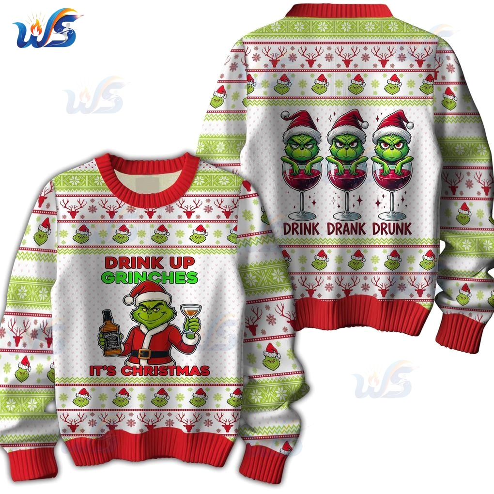 Unwrap the Merriment: Your Go-To ‘Drink Up Grinches’ Festive Holiday Sweater!