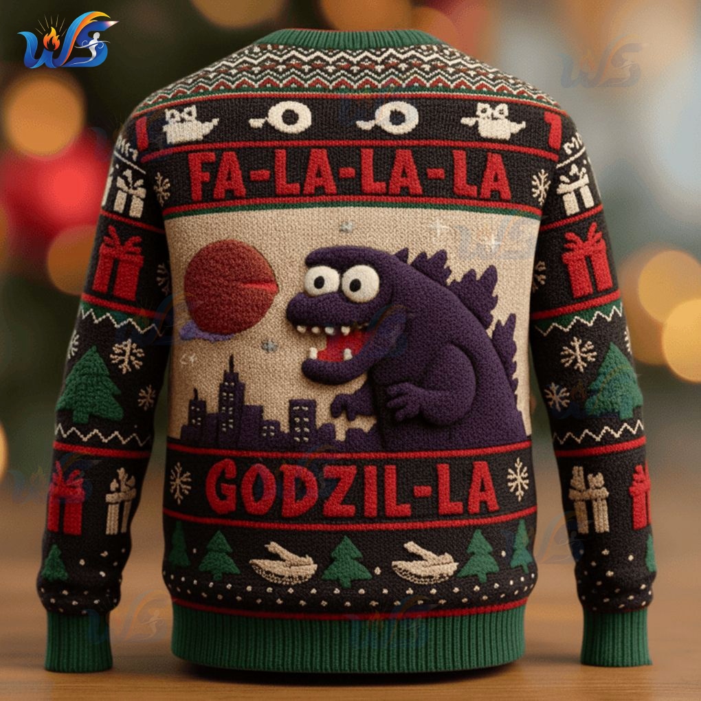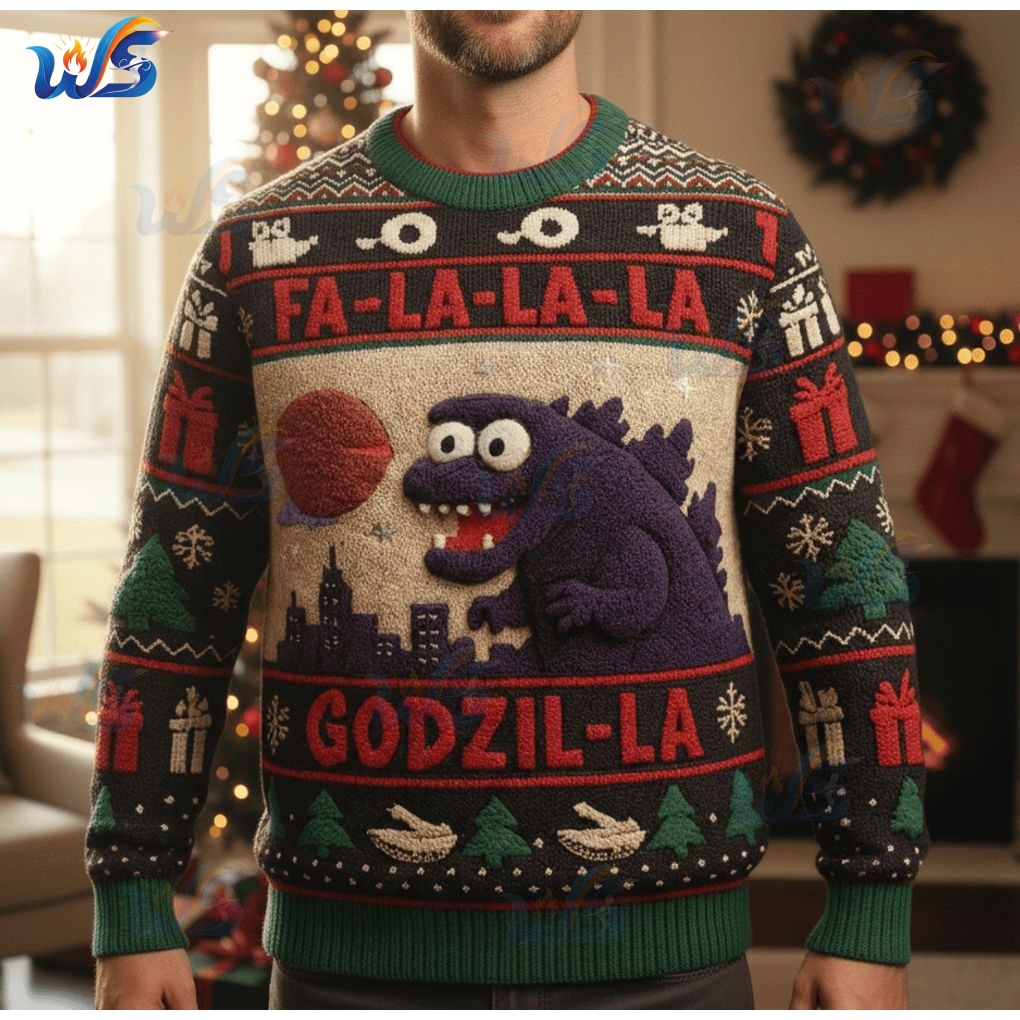 ,Falalala Godzilla Christmas Ugly Sweater,Falalala Godzilla Christmas Ugly Sweater