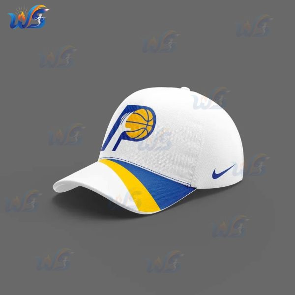 They went with a clean, bright white base, which we love because it makes the classic Pacers blue and gold really pop. That vibrant royal blue dominates the central stripe, grounding the design, while the golden yellow slices through it and outlines the bold “PACERS” wordmark. The yellow isn’t just a secondary color here; it’s a dynamic accent that brings a lot of energy and highlights the team name beautifully. The wordmark itself is strong, sitting front and center on that blue field, making it impossible to miss your allegiance.