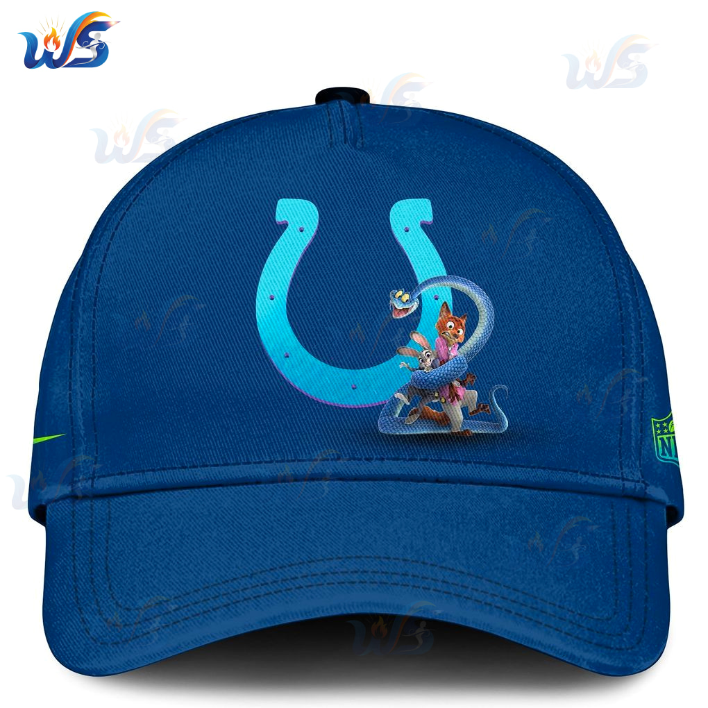 Take the main color, that vibrant royal blue. It’s the unmistakable foundation of the Colts, grounding the entire piece in team spirit. Then, you see the “COLTS” lettering and the iconic horseshoe logo on the front, rendered in a fantastic green-to-blue gradient. This isn’t just a random color choice; it feels like it reflects the energetic, almost neon glow of a bustling city like Zootopia, or even the bright lights of a stadium. It adds a modern, almost digital edge that pops against the solid blue.