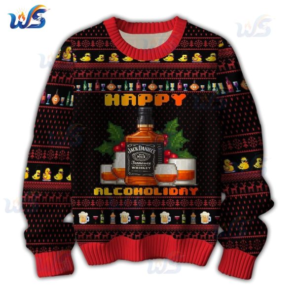 Jack Daniel Happy Alcoholiday Christmas Ugly Sweater