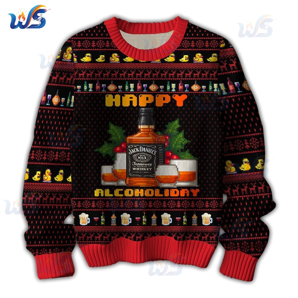 Jack Daniel Happy Alcoholiday Christmas Ugly Sweater