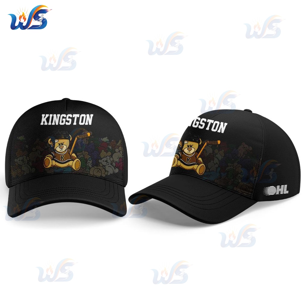 Above, the iconic Kingston Frontenacs “K” logo stands proud in its classic black and gold, a beacon of team pride.