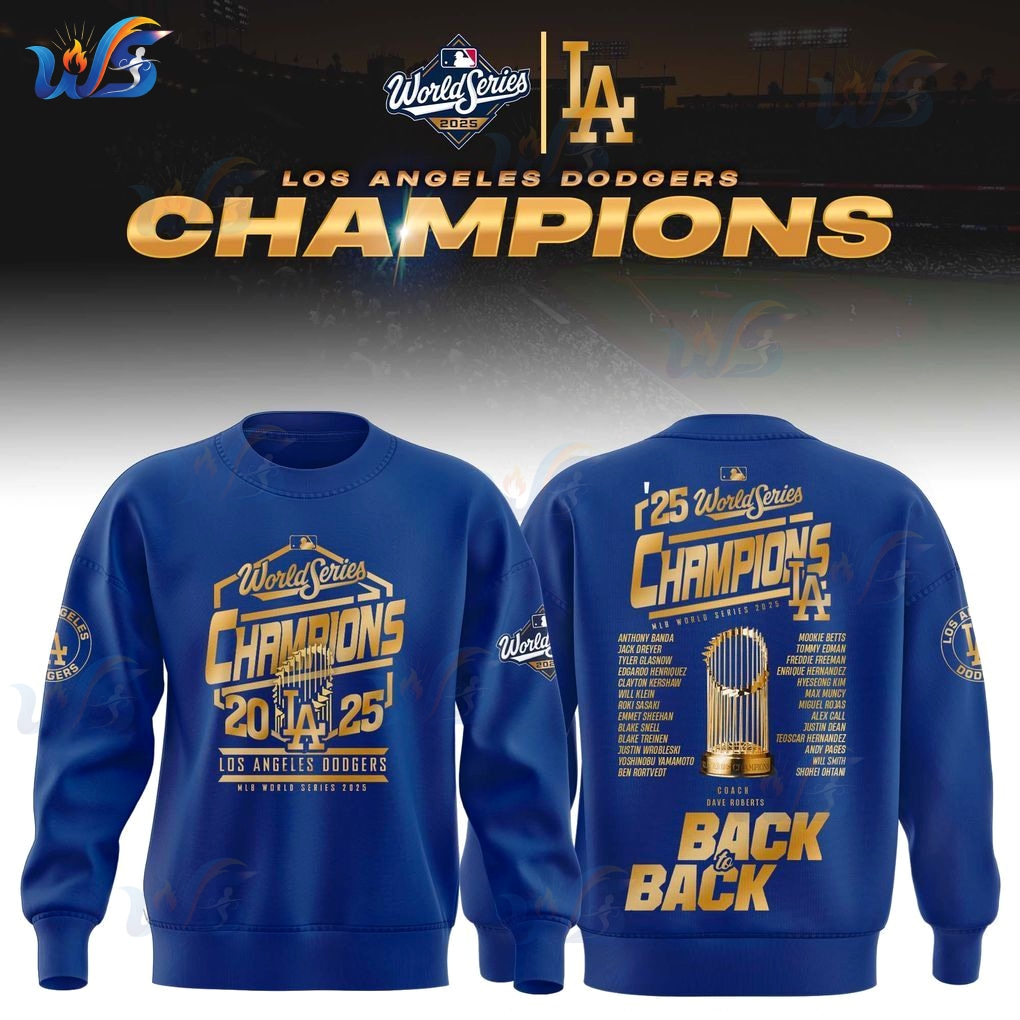 Another common frustration is wanting to easily share memories and spark conversations about the championship with fellow fans, but not having specific talking points on your clothing. The detailed player roster and “Back to Back” message on the back of this collection provide natural conversation starters, inviting others to relive the moments and discuss the team’s heroes. This functionality eliminates the awkwardness of trying to initiate discussions, allowing the apparel to do some of the work for you. Furthermore, we know fans often struggle with needing versatile fan apparel that works across different weather conditions or personal preferences for comfort. The availability of a T-shirt for warmer days, a comfortable sweatshirt, and a cozy hoodie for cooler evenings eliminates the problem of being too hot or too cold, offering options for various climates and occasions without sacrificing your championship statement. This collection also prevents the common issue of needing a lasting memento that truly captures the emotion and specifics of a historic championship for years to come. This collection serves as a tangible, detailed historical record of the 2025 World Series victory, preventing the frustration of fading memories and providing a durable keepsake that will remind you of the exhilaration for years to come.