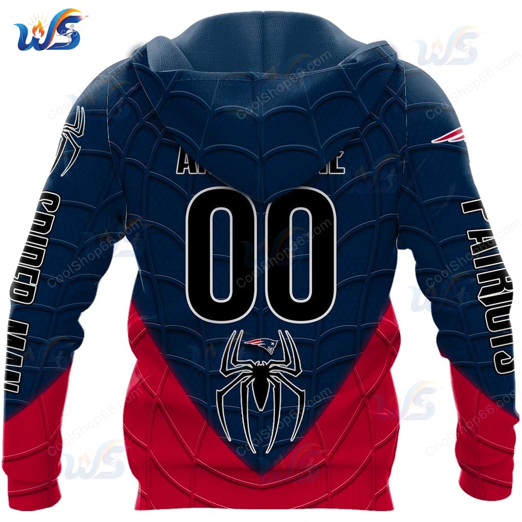 Compared to generic “mash-up” apparel that often feels like a hastily assembled collage, this hoodie is a masterpiece of integration. The colors are rich and true to their origins – the Patriots’ iconic blue and red, and Spider-Man’s vibrant primary palette. Every line, every color choice, and every emblem has been thoughtfully placed to create a harmonious and powerful aesthetic that truly honors both the legacy of the New England faithful and the enduring heroism of the web-slinger. It’s the kind of visual design that sparks conversation, draws admiring glances, and broadcasts your unique, unwavering spirit.