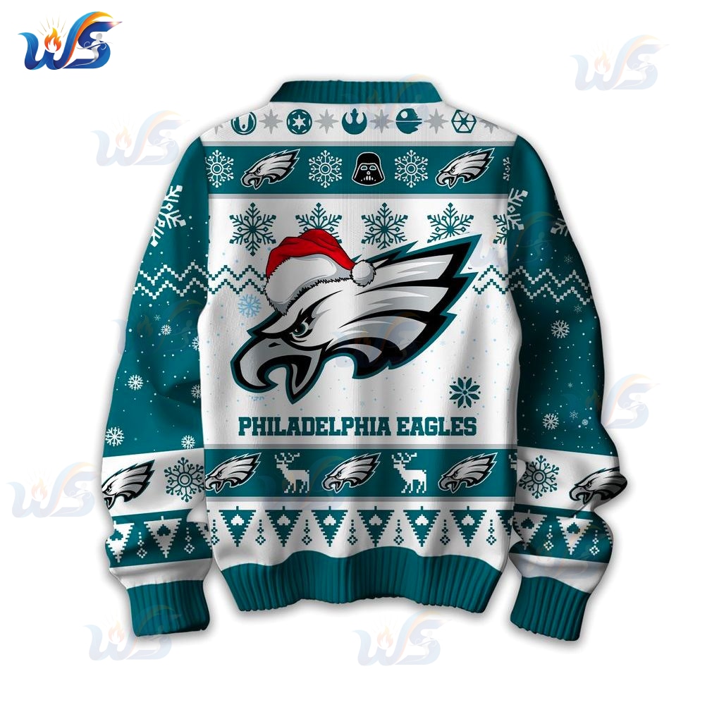 Prepare to make an entrance, whether you’re tailgating before a crucial December game, spreading cheer at your annual holiday bash, or simply enjoying a cozy night in. This isn’t just an “ugly sweater”; it’s a masterwork of fan fusion, meticulously designed to honor both the mighty Birds and the iconic Star Wars universe, all wrapped up in festive holiday cheer.