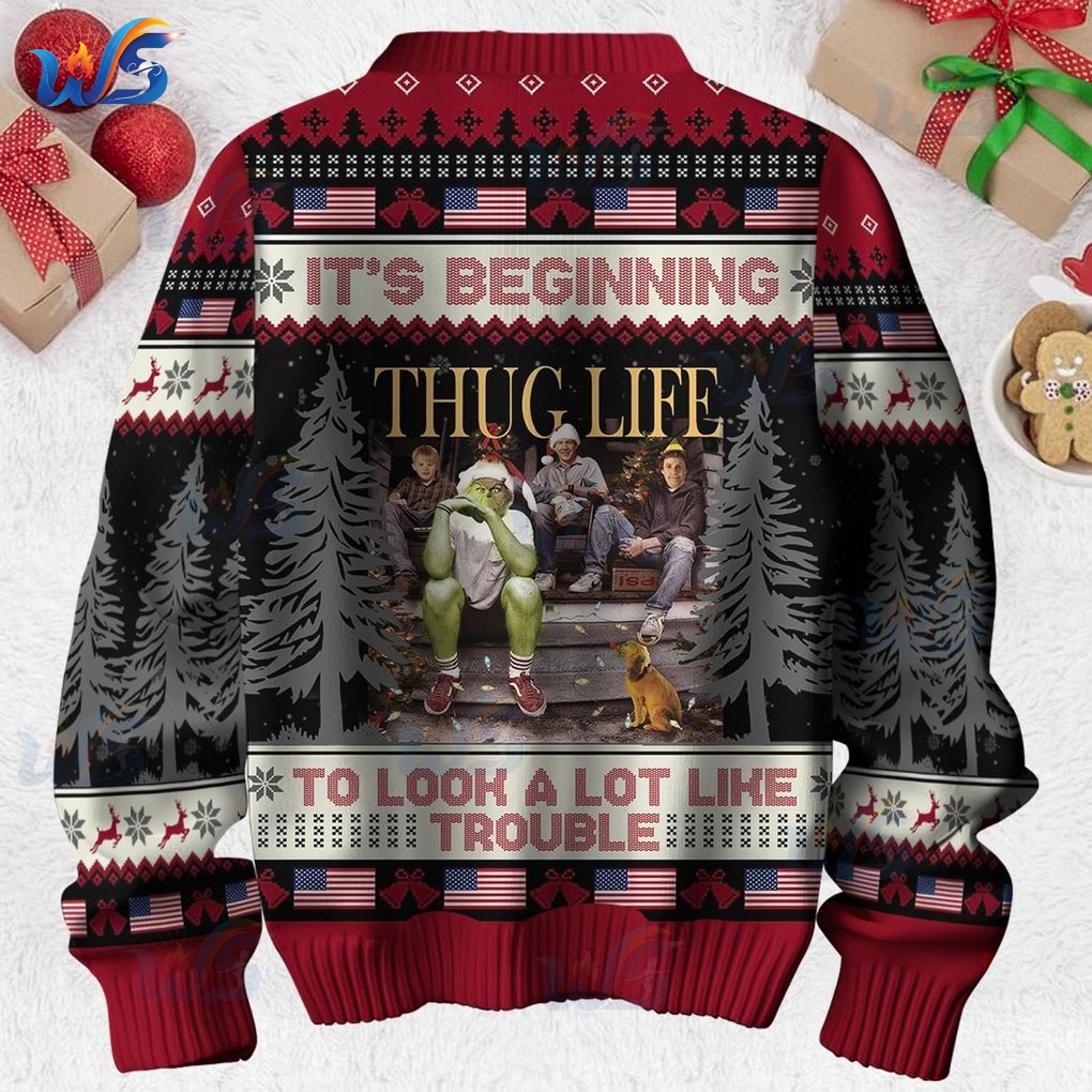 Most ugly Christmas sweaters have one common issue: they blend in. They’re fine, but they don’t actually solve the problem of feeling truly individual at a holiday gathering. Our Thug Life Ugly Christmas Sweatshirt directly addresses this by offering a design that is anything but generic. The bold, central image featuring a Grinch-like character and his crew, perfectly juxtaposed with the festive “IT’S BEGINNING TO LOOK A LOT LIKE TROUBLE” text, eliminates the frustration of searching for holiday apparel that truly reflects your edgy sense of humor. This isn’t just a funny graphic; it’s a statement piece specifically crafted to cut through the noise of typical holiday wear.