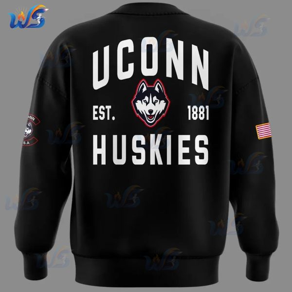 Fans often complain about gear that doesn’t balance history with contemporary energy. This sweatshirt fixes that by featuring “UCONN EST. 1881 HUSKIES” on the back, acknowledging tradition, while “WAR DADDIES 2025” on the front anchors it firmly in the present. This combination eliminates the dilemma of choosing between historical homage and current team narrative.